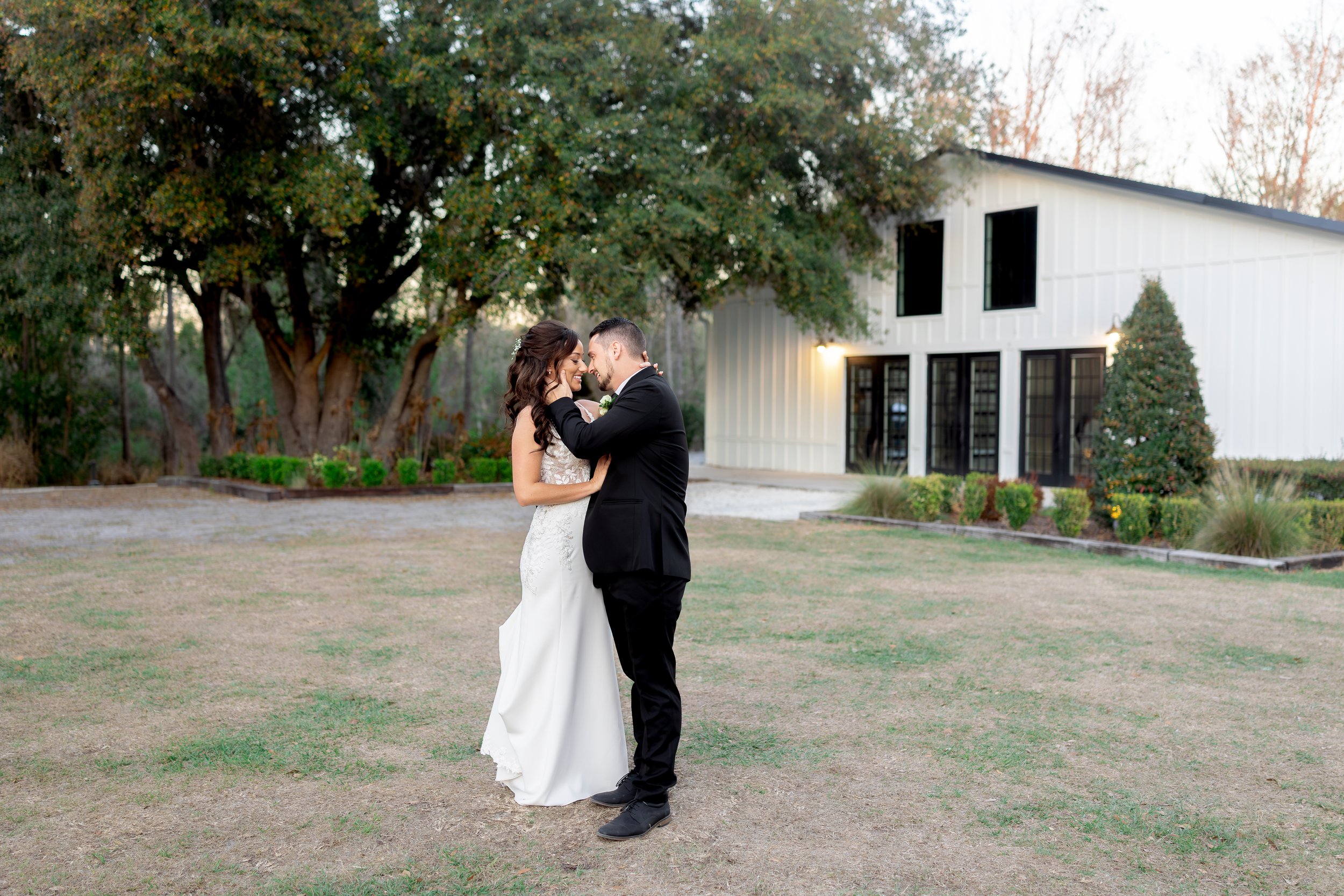 Sunset portraits at Paradise Springs, in Lithia, Florida. A villa style backyard wedding venue in the Tampa Bay area with a pool, indoor reception, stunning property and getting ready spaces.