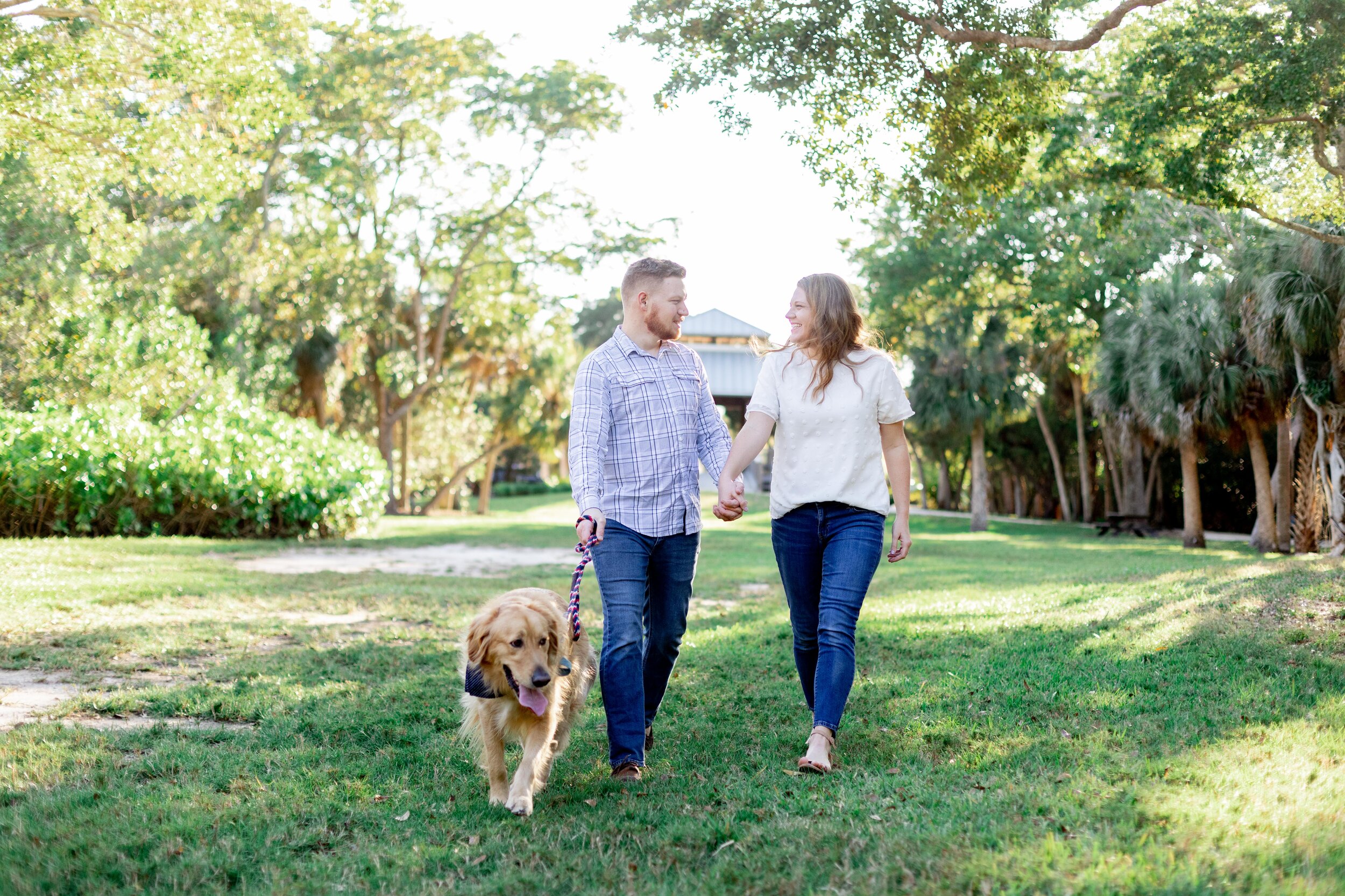 Meet Bridget and Ryan! This incredible couple found me on Pinterest and their dream engagement session took place on the ever-beautiful Anna Maria Island. But, since the beaches of Anna Maria Island aren’t dog-friendly and they wanted to include their fur babe Finnegan, we started our session on the trails at Joan Durante Park.